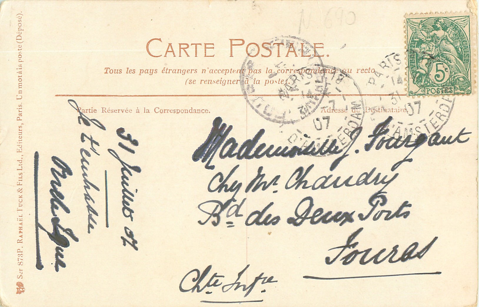 OILETTE (on front), UN MOT A LA POSTE (DEPOSE), suffix P, come with CHICOREE ARLATTE & CIE ad. on back, same image, English back OILETTE 9298 ANCIENT YOUNGSTERS