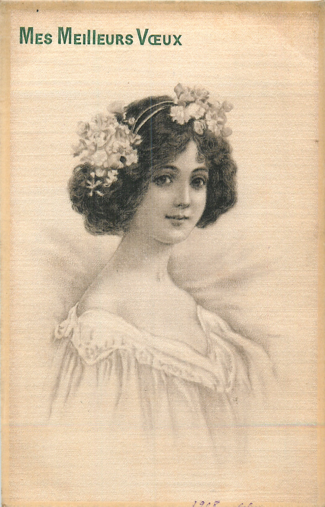 printed on silk with card backing, hand-coloured, pale orange borders, UN MOT A LA POSTE, (DEPOSE), suffix P