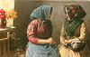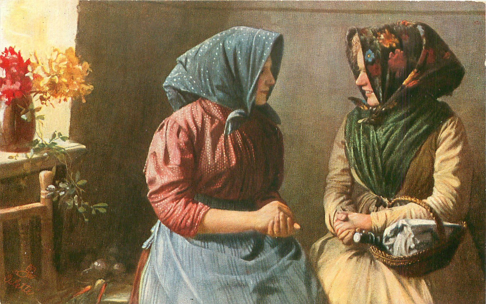 two women sit facing each other, gossiping