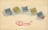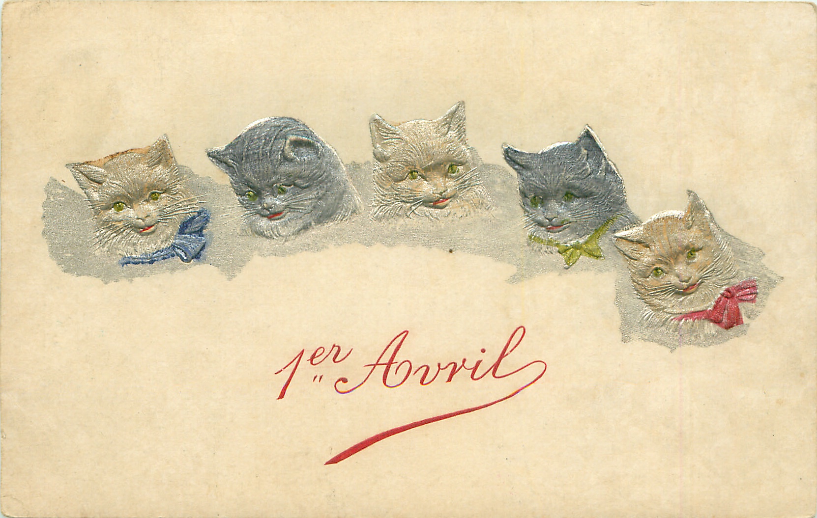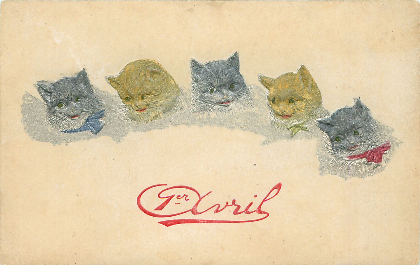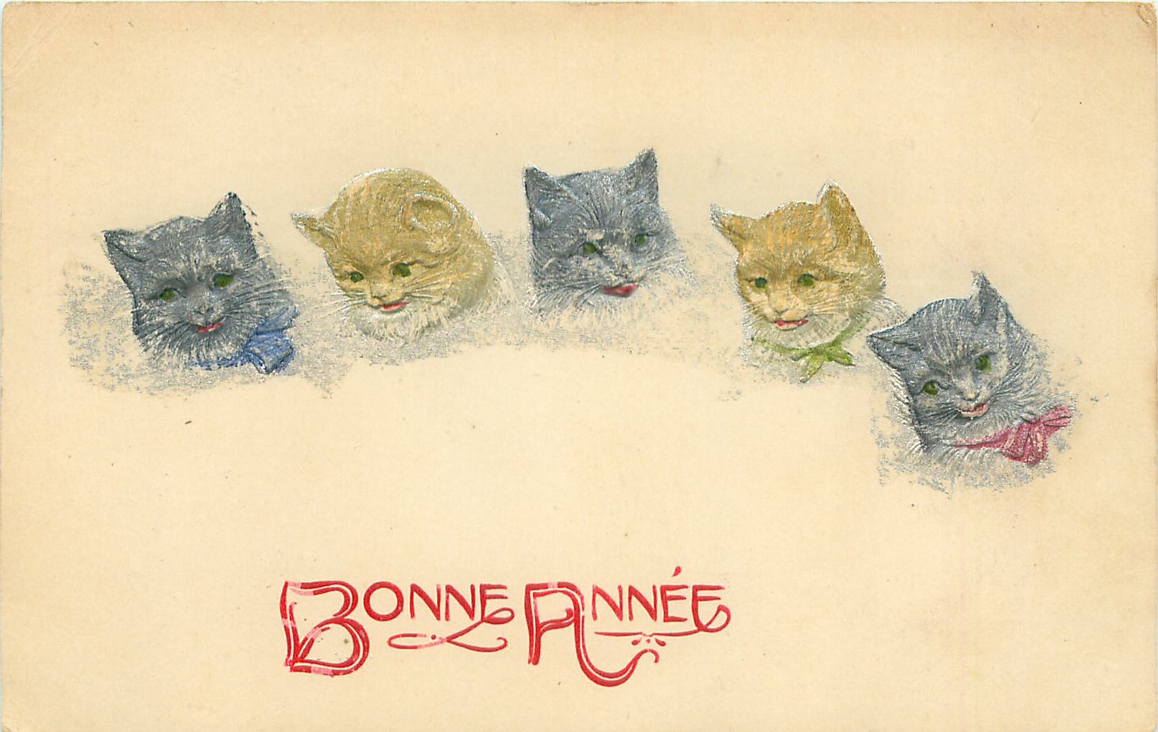 greetings, five embossed cats heads