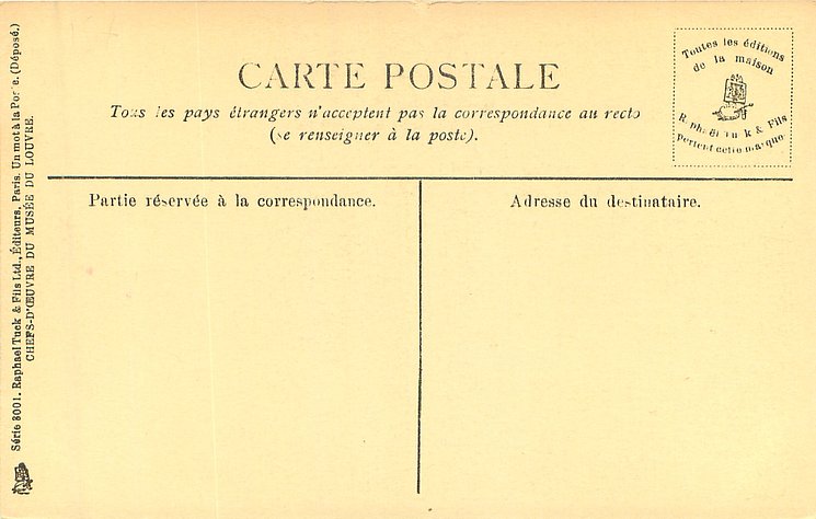 UN MOT A LA POSTE, (DEPOSE), same image & number, German/International back 3001, COLLECTION ALTER MEISTER AUS DEN FRANZOSISCHEN GALERIEN with inscription, front title & artist in French