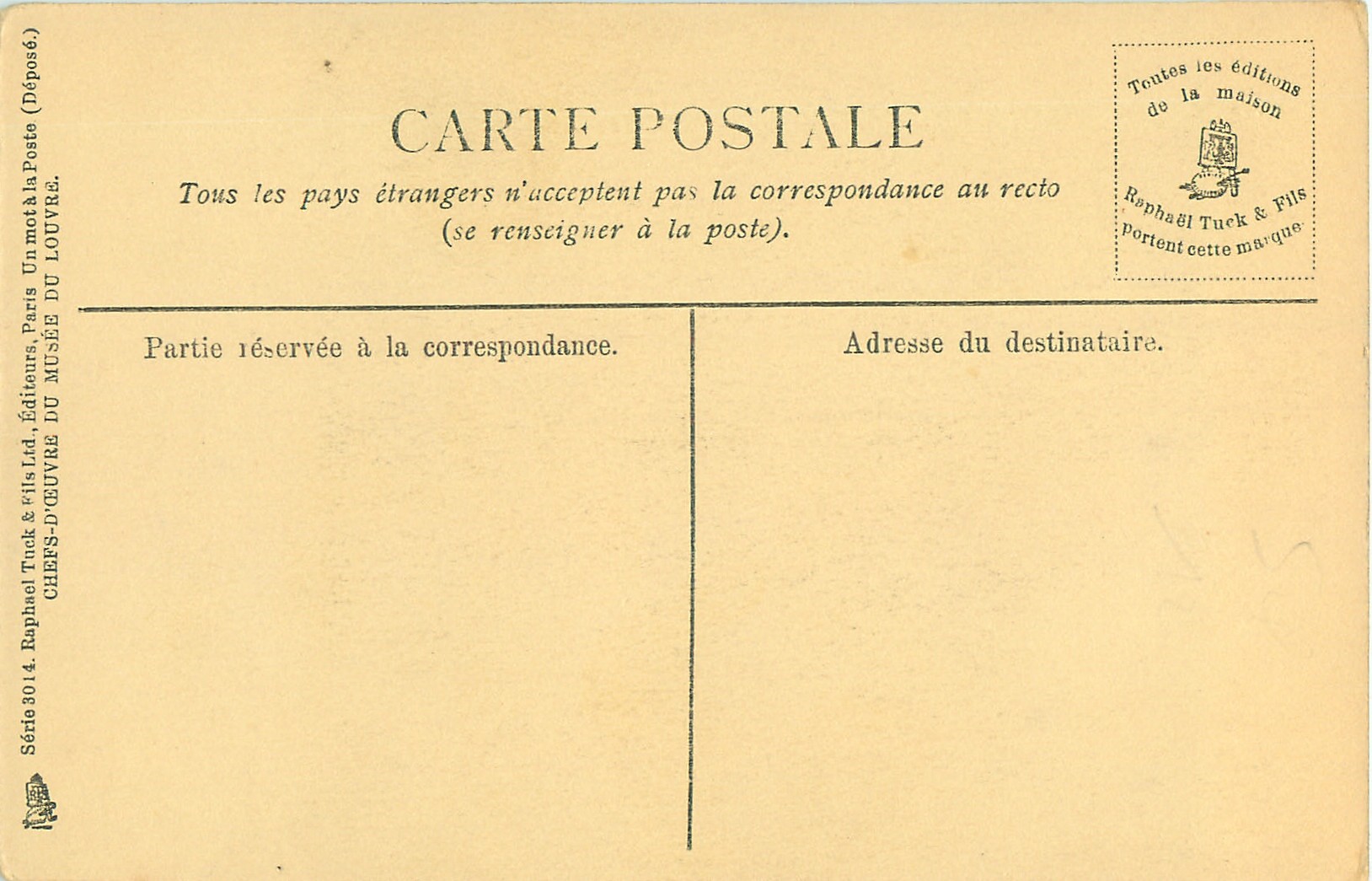 brown/purple, UN MOT A LA POSTE, (DEPOSE), same image & number, German/International back 3014 COLLECTION ALTER MEISTER AUS DEN FRANZOSISCHEN GALERIEN with inscription,front title & artist i