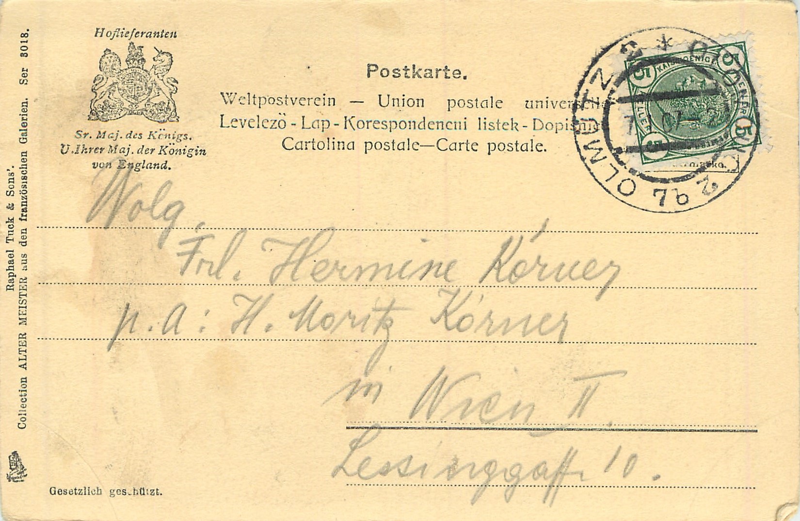 brown/purple,UN MOT A LA POSTE, (DEPOSE), same image & number, German/International back 3018 COLLECTION ALTER MEISTER AUS DEN FRANZOSISCHEN GALERIEN with inscription,front title & artist in French