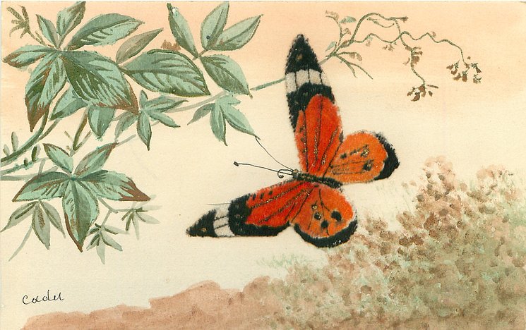 UN MOT A LA POSTE (DEPOSE), u/b, silk butterfly applique