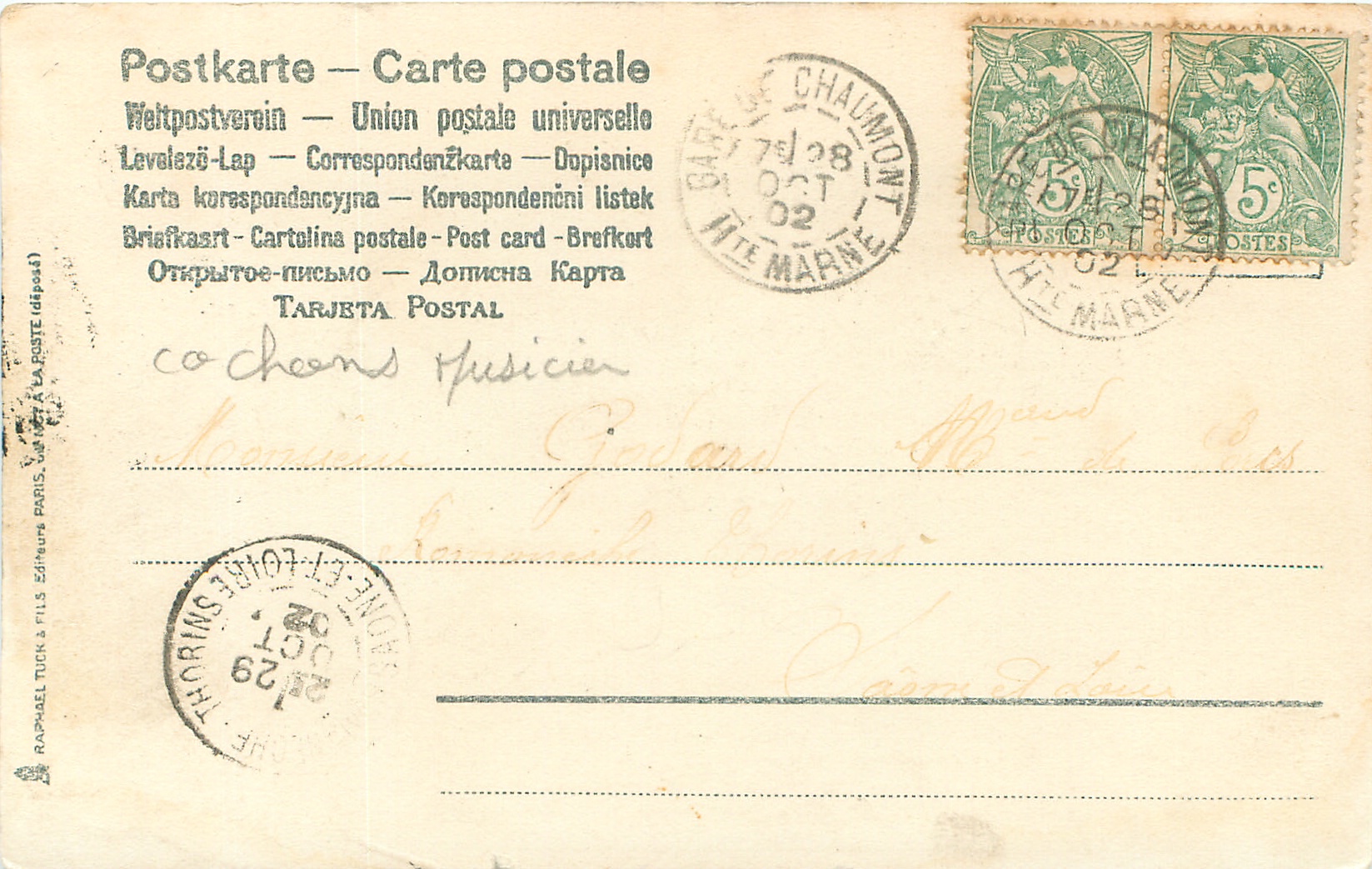 unnumbered, u/b, UN MOT A LA POSTE, (DEPOSE) with international postcard notations upper left on back, come opt. in black 1ER APRIL together with DEVINEZ QUI VOUS L'ENVOIE, grey/black, same images may come French back DEVINEZ QUI 420