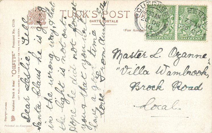 OILETTE, PRINTED IN ENGLAND, COPYRIGHT LONDON,with & without greetings as opt. in red