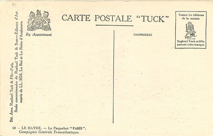 LE PAQUEBOT "PARIS" COMPAGNIE GENERALE TRANSATLANTIQUE