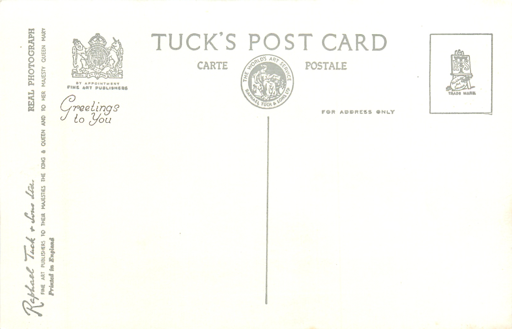 REAL PHOTOGRAPH, PRINTED IN ENGLAND, GREETINGS TO YOU or TO BRING YOU GREETINGS on back