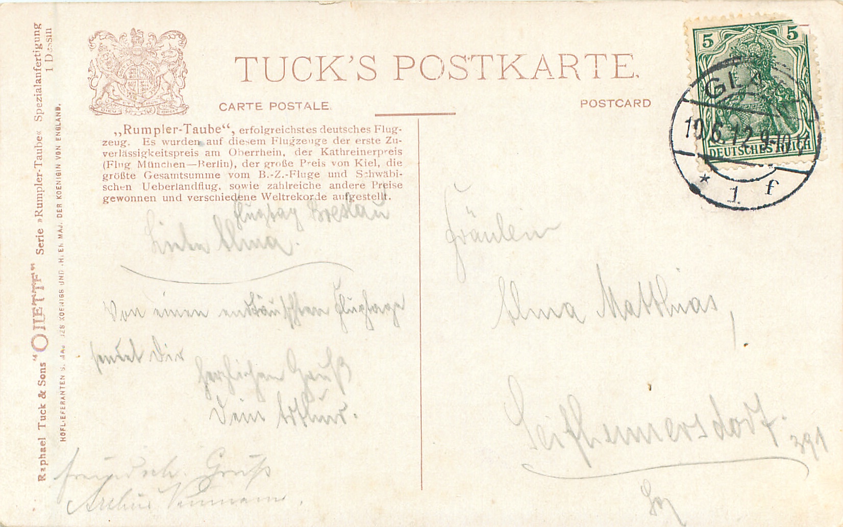 RUMPLER-TAUBE inscribed on side of pioneer air-plane
