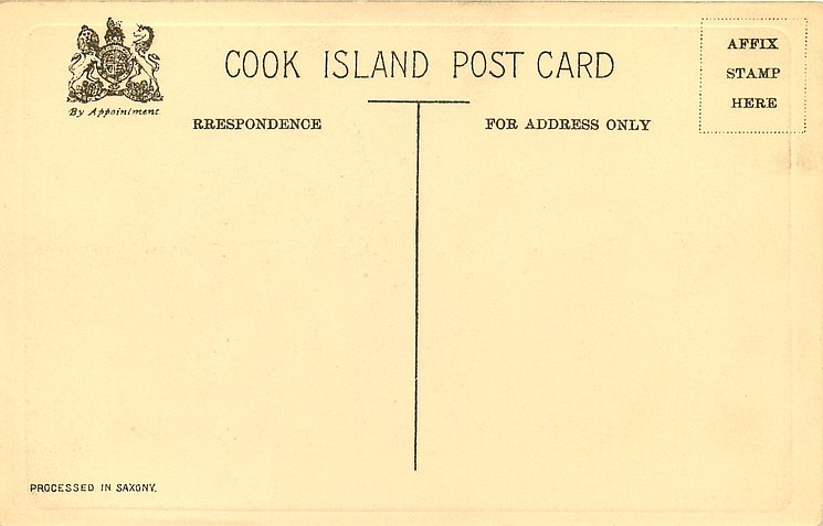 COOK ISLAND POSTCARD, PROCESSED IN SAXONY, embossed margins