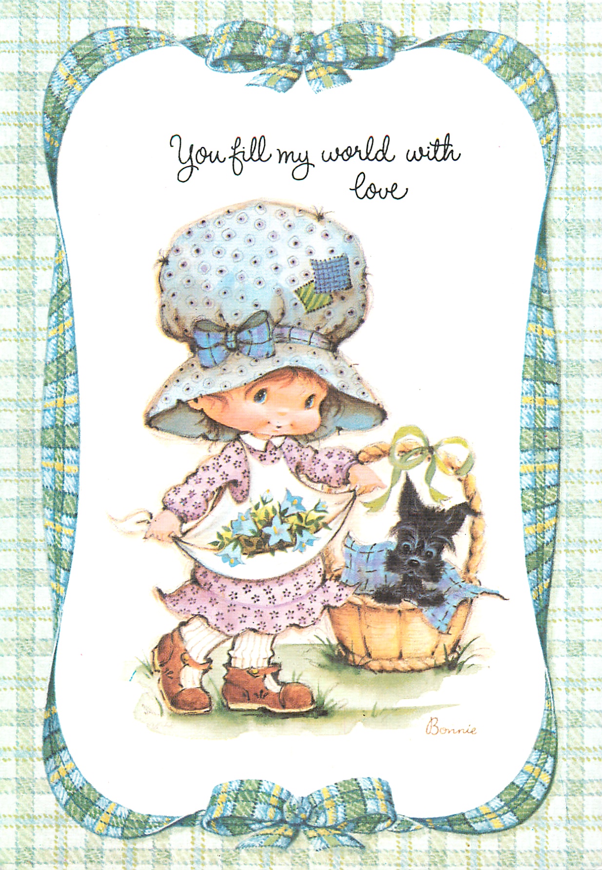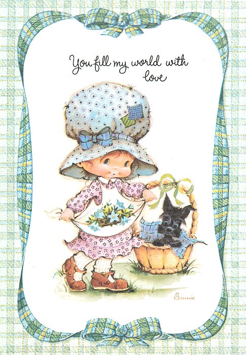 YOU FILL MY WORLD WITH LOVE girl moves right, puppy in basket