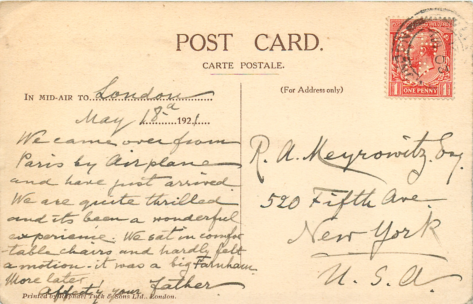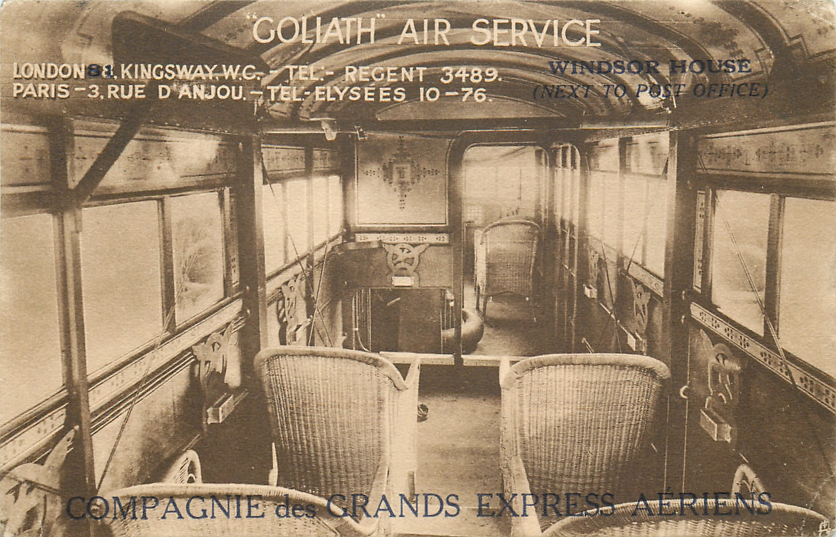 real photograph not so trade named, booking addresses printed on front, with & w/o "GOLIATH" AIR SERVICE, on back:- IN MID-AIR TO.......