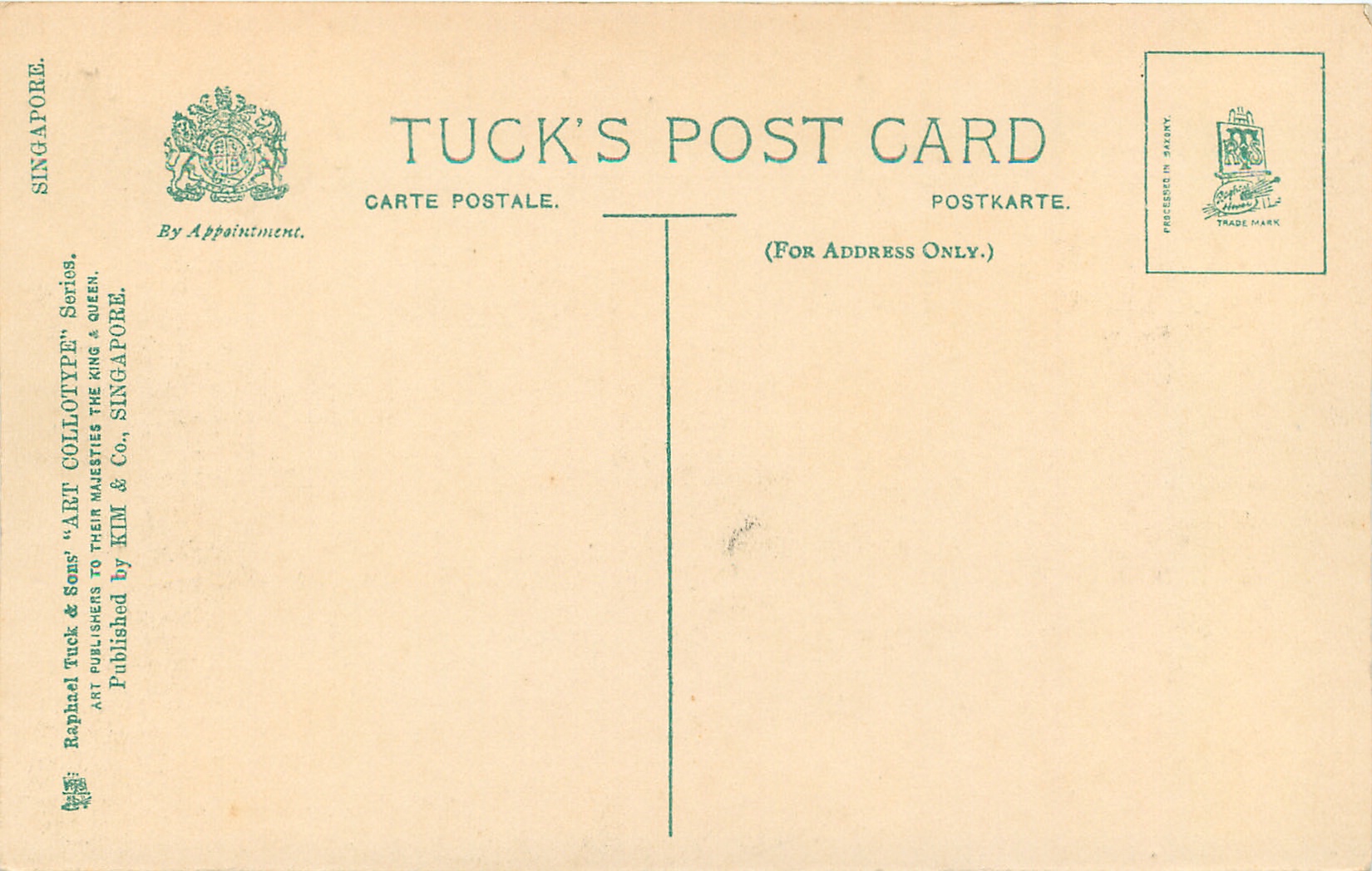 grey, green backs, ART COLLOTYPE, PUBLISHED BY KIM & CO., SINGAPORE, PROCESSED IN SAXONY (in stamp box), shades of grey/black