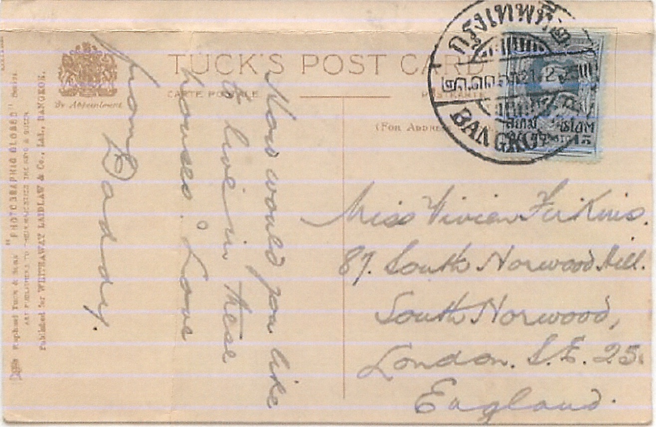 shades of grey/black, PHOTOGRAPHIC GLOSSO, PROCESSED IN SAXONY (in stamp box), PUBLISHED FOR WHITEAWAY LAIDLAW & CO., LTD., BANGKOK, many of the same images COLLO-PHOTO 893,