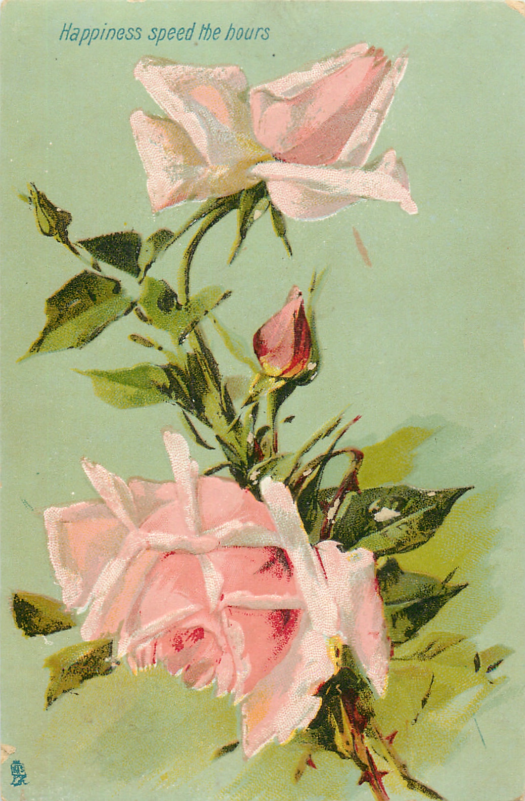 HAPPINESS SPEED THE HOURS two pink roses & two buds