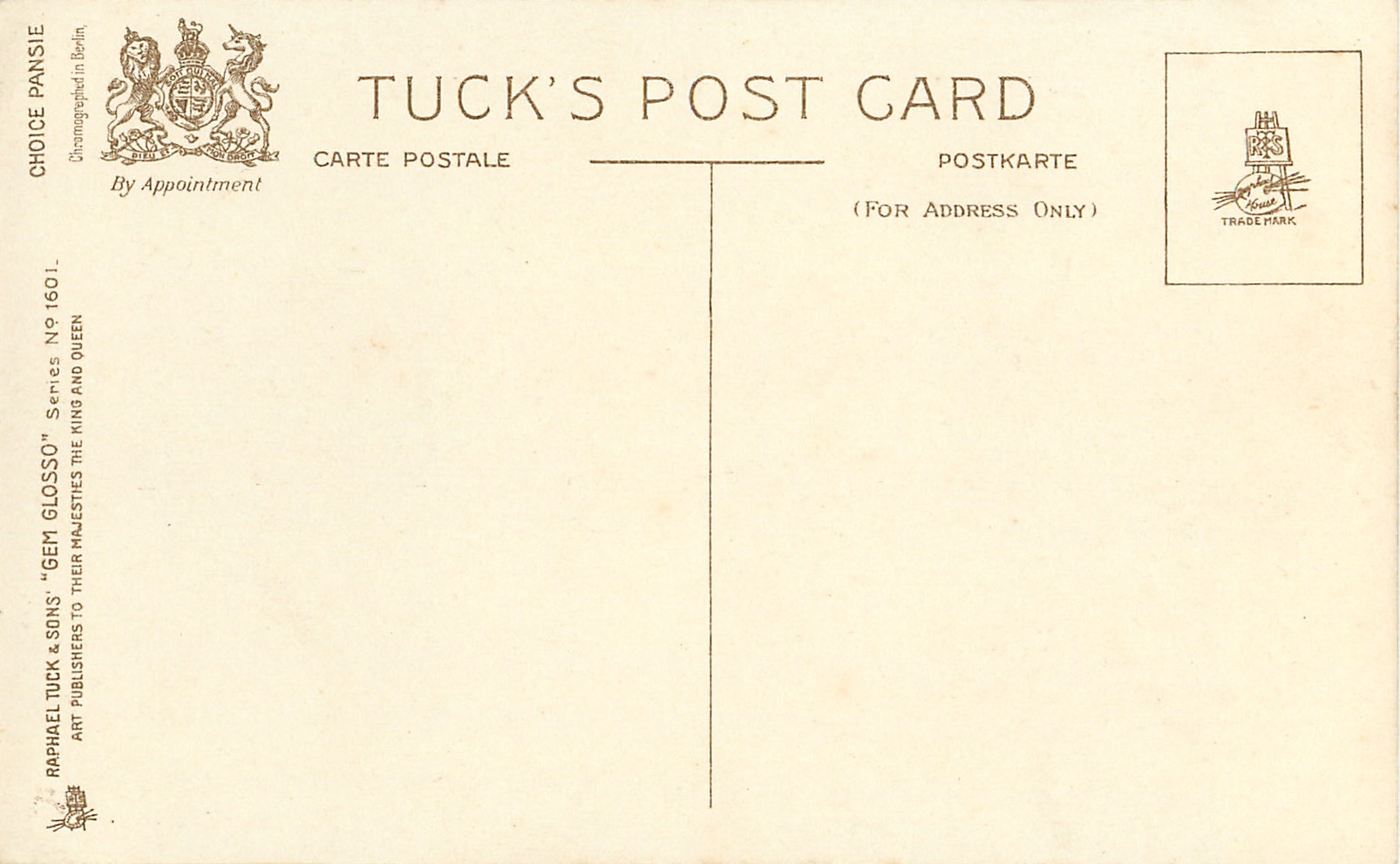GEM GLOSSO, come with or w/o series title, CHROMOGRAPHED IN BERLIN, listed in 1912 Catalogue