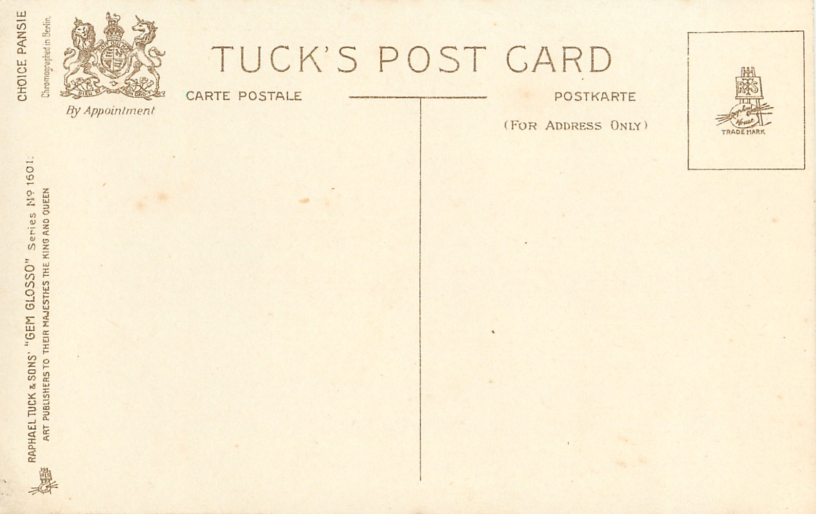 GEM GLOSSO, come with or w/o series title, CHROMOGRAPHED IN BERLIN, listed in 1912 Catalogue