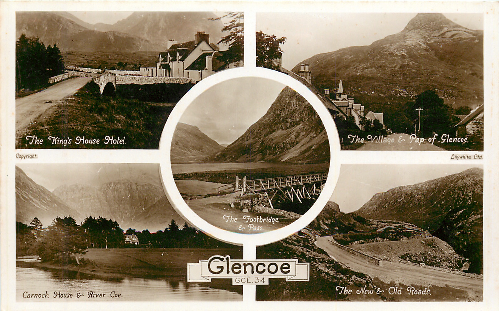 5 insets THE KING'S HOUSE HOTEL/THE VILLAGE AND PAP OF GLENCOE/THE FOOTBRIDGE & PASS/CARNOCH HOUSE & RIVER COE/THE NEW & OLD ROADS