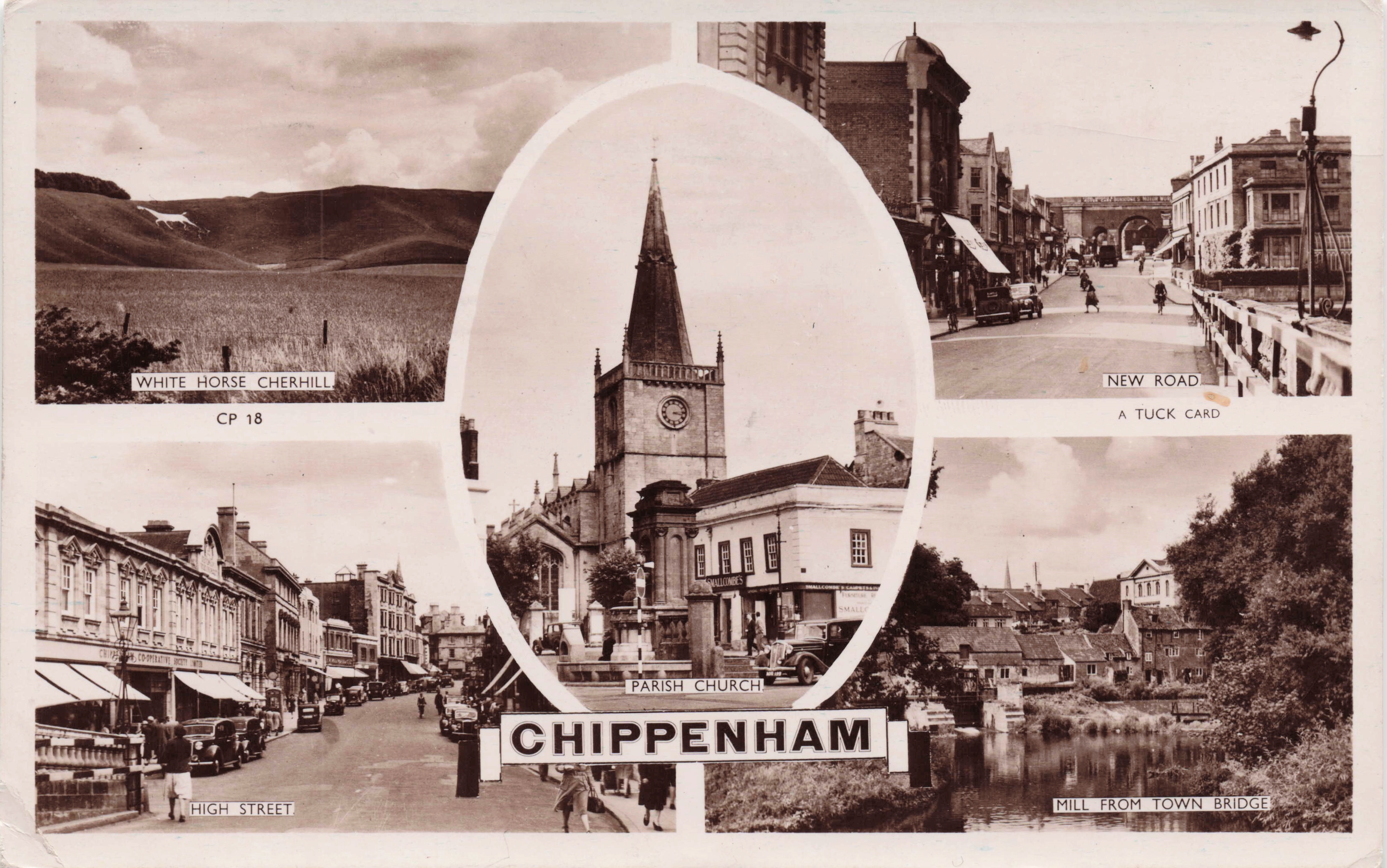 5 insets WHITE HORSE, CHERHILL/NEW ROAD/PARISH CHURCH/HIGH STREET/MILL FROM TOWN BRIDGE