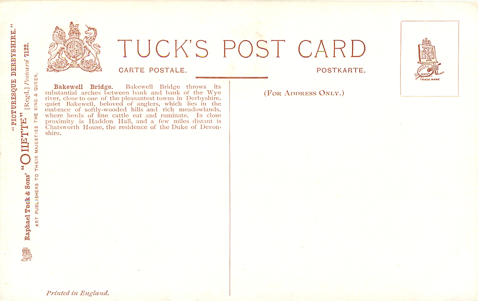 OILETTE, PRINTED IN ENGLAND, 4 backs, listed in 1908/1909 Catalogue