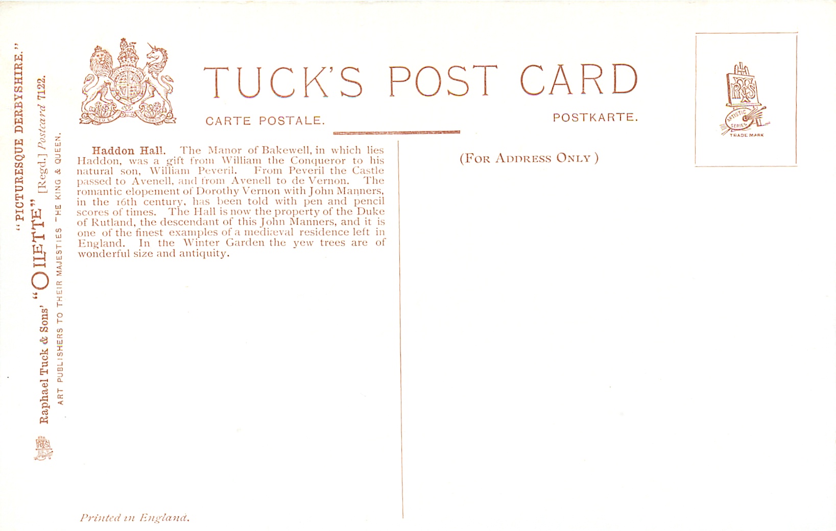 OILETTE, PRINTED IN ENGLAND, 4 backs, listed in 1908/1909 Catalogue