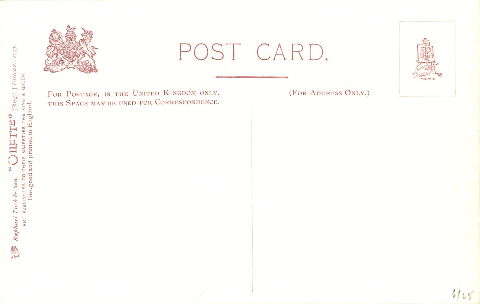 OILETTE, DESIGNED AND PRINTED IN ENGLAND, listed in 1904 & 1908/1909 &1911/1912 POSTCARD Catalogues