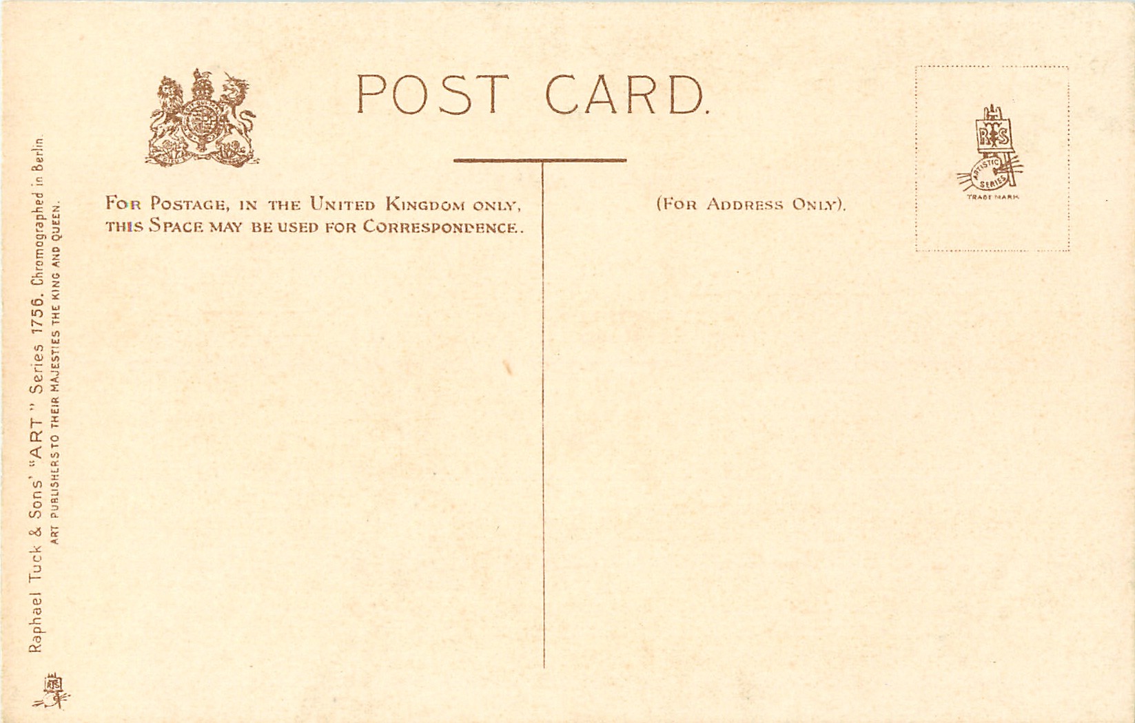ART, CHROMOGRAPHED IN BERLIN, listed in 1908/1909 & 1911/1912 Postcard Catalogue, these images are enlarged versions of those in 1457