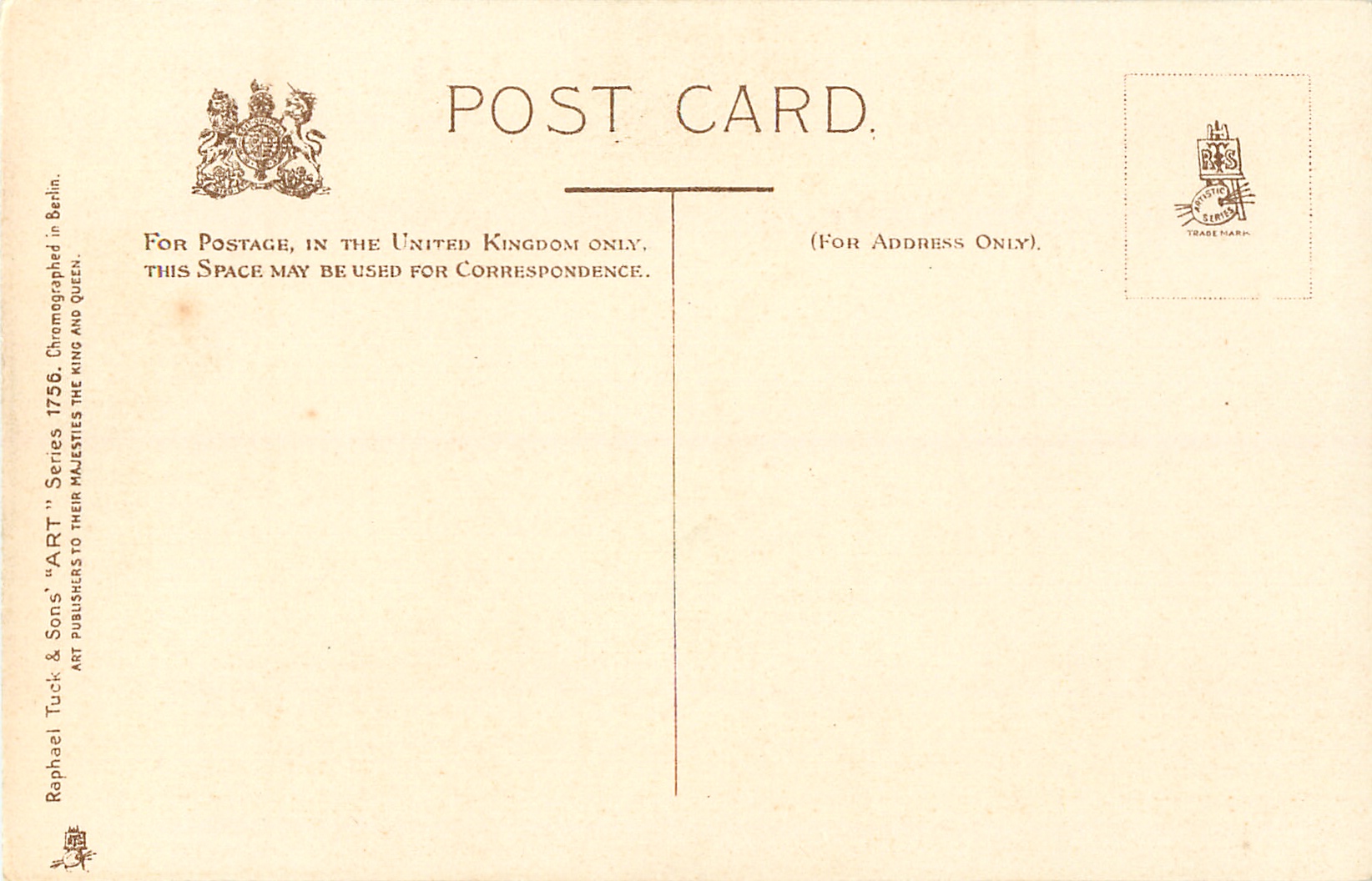 ART, CHROMOGRAPHED IN BERLIN, listed in 1908/1909 & 1911/1912 Postcard Catalogue, these images are enlarged versions of those in 1457