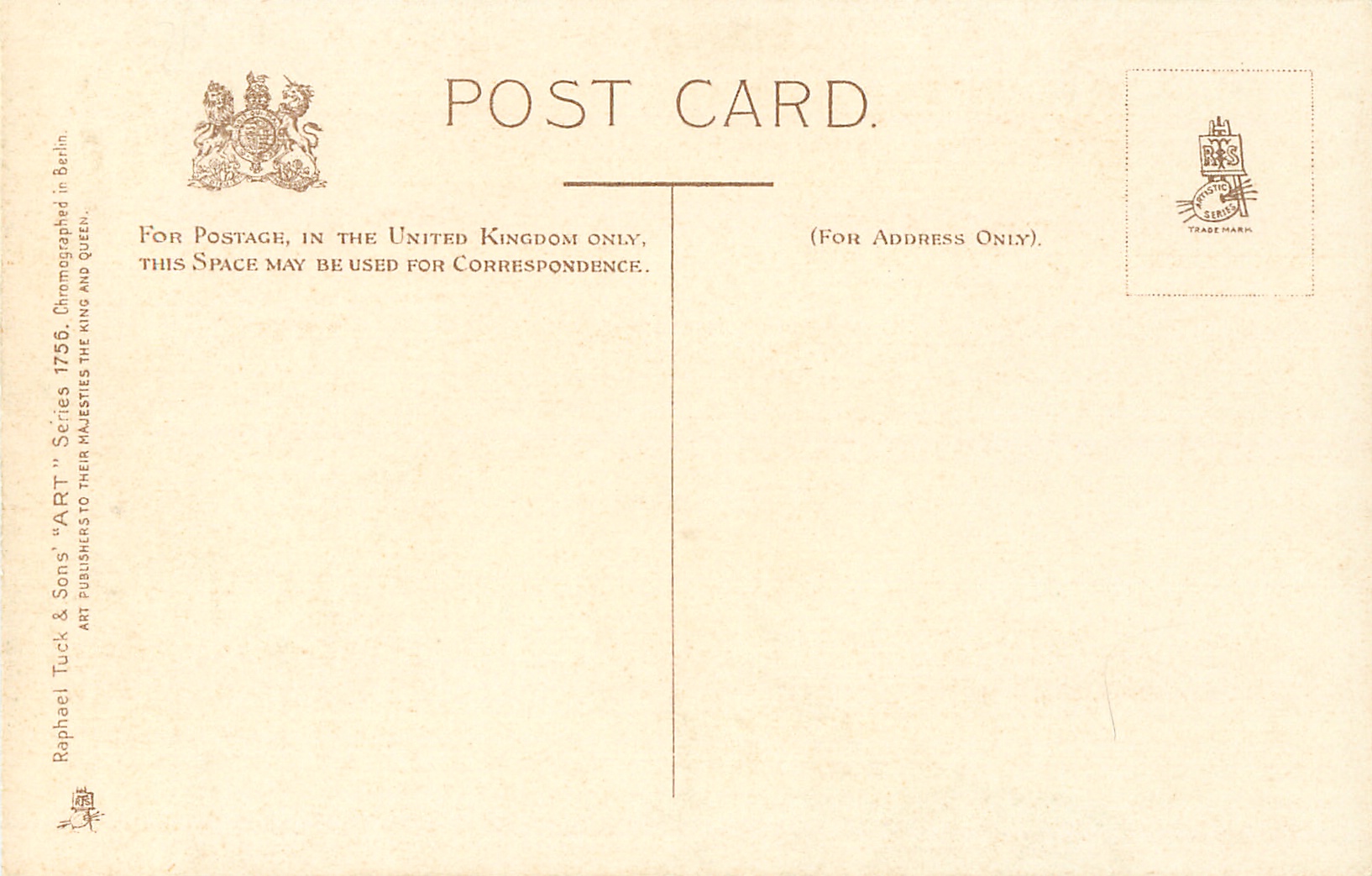ART, CHROMOGRAPHED IN BERLIN, listed in 1908/1909 & 1911/1912 Postcard Catalogue, these images are enlarged versions of those in 1457