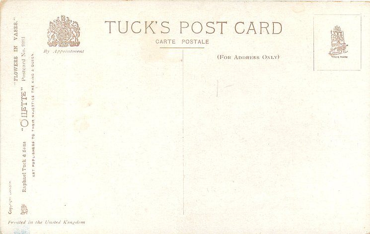OILETTE, come Oilfacsim but not so trade-named, PRINTED IN ENGLAND or PRINTED IN UNITED KINGDOM, with or w/o COPYRIGHT LONDON, listed in 1912/1913 &1913/1914 & 1926/1927 &1930 POSTCARD Catalogues