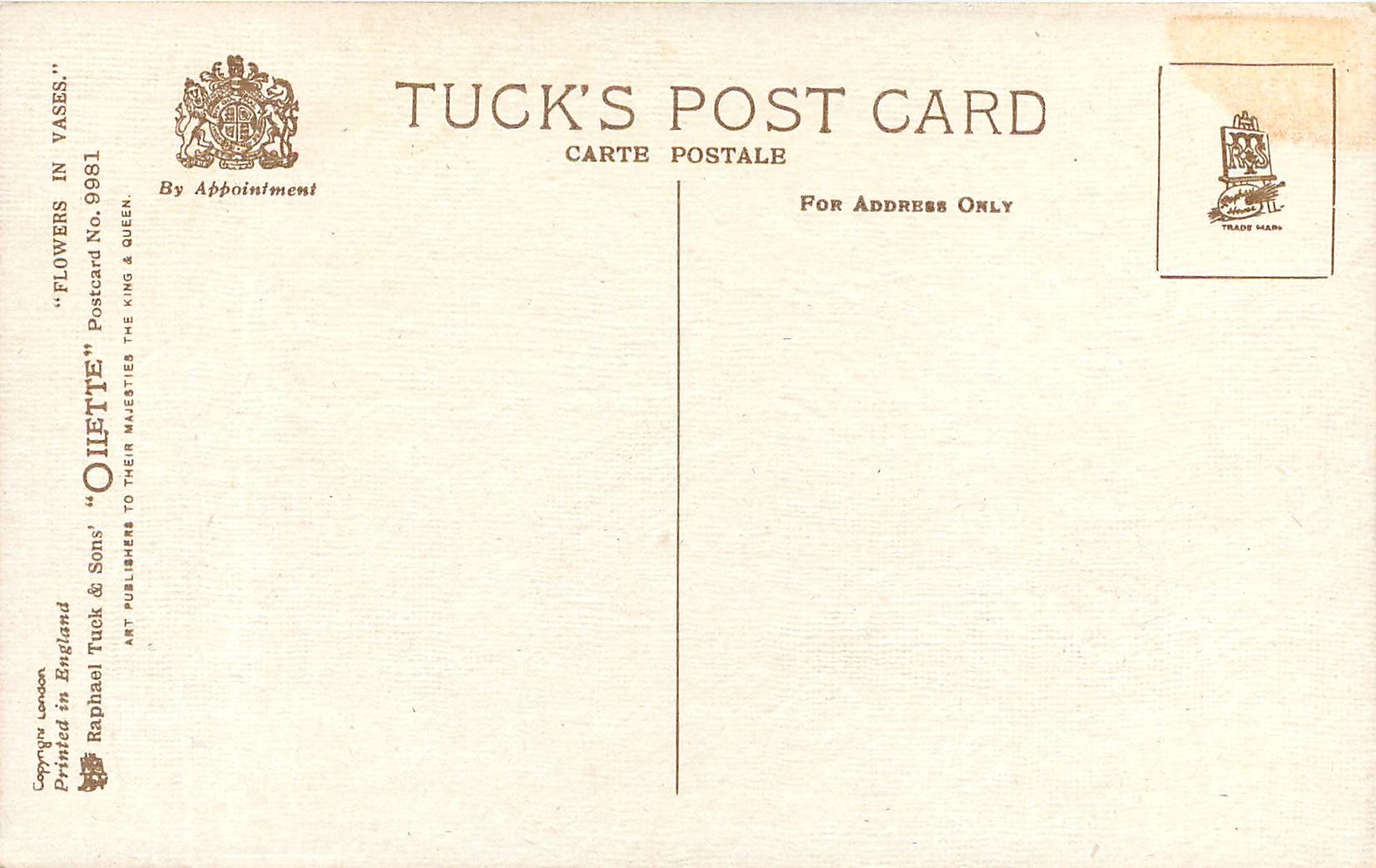 OILETTE, come Oilfacsim but not so trade-named, PRINTED IN ENGLAND or PRINTED IN UNITED KINGDOM, with or w/o COPYRIGHT LONDON, listed in 1912/1913 &1913/1914 & 1926/1927 &1930 POSTCARD Catalogues