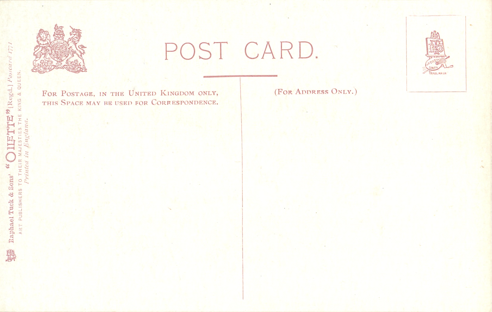 OILETTE, PRINTED IN ENGLAND, listed in 1904 & 1908/1909 POSTCARD Catalogue