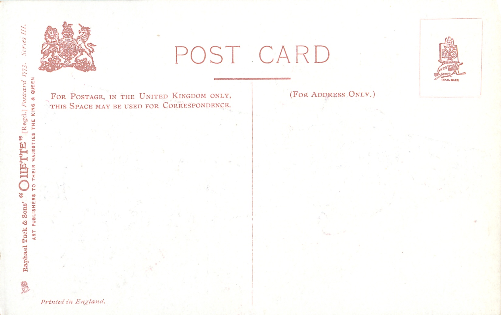 OILETTE, PRINTED IN ENGLAND, listed in 1908/1909 Catalogue