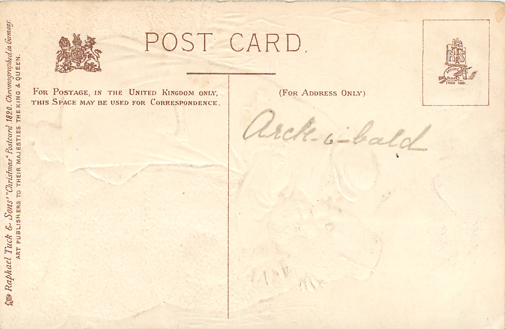 embossed, CHROMOGRAPHED IN GERMANY, come glittered, listed in RAPHAEL TUCK & SONS' LD. CHRISTMAS & NEW YEAR 1904/1905 catalogue