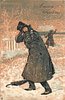 A MERRY CHRISTMAS man tries to remove hat after fight in snow