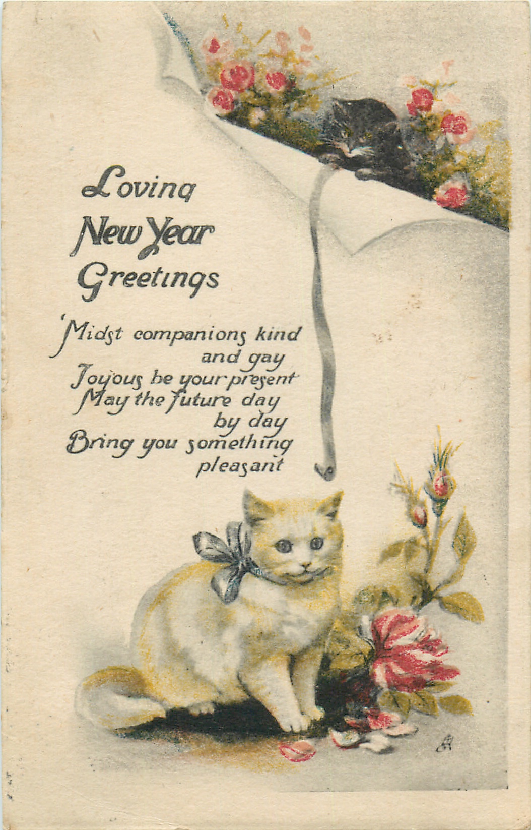 LOVING NEW YEAR GREETINGS 2 cats, roses