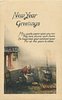 NEW YEAR GREETINGS cottage scene, old woman cooks