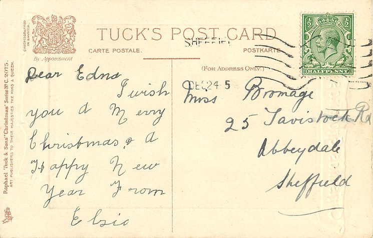 embossed, CHROMOGRAPHED IN BAVARIA, same images come w/o embossing or insets C 2073, w/ holly border C 2077