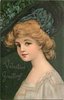 VALENTINE GREETINGS pretty woman, white gold trimmed dress & large hat, faces left, looks front