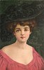 TO MY VALENTINE pretty woman, red dress, large hat, faces & looks front, no frill at neckline