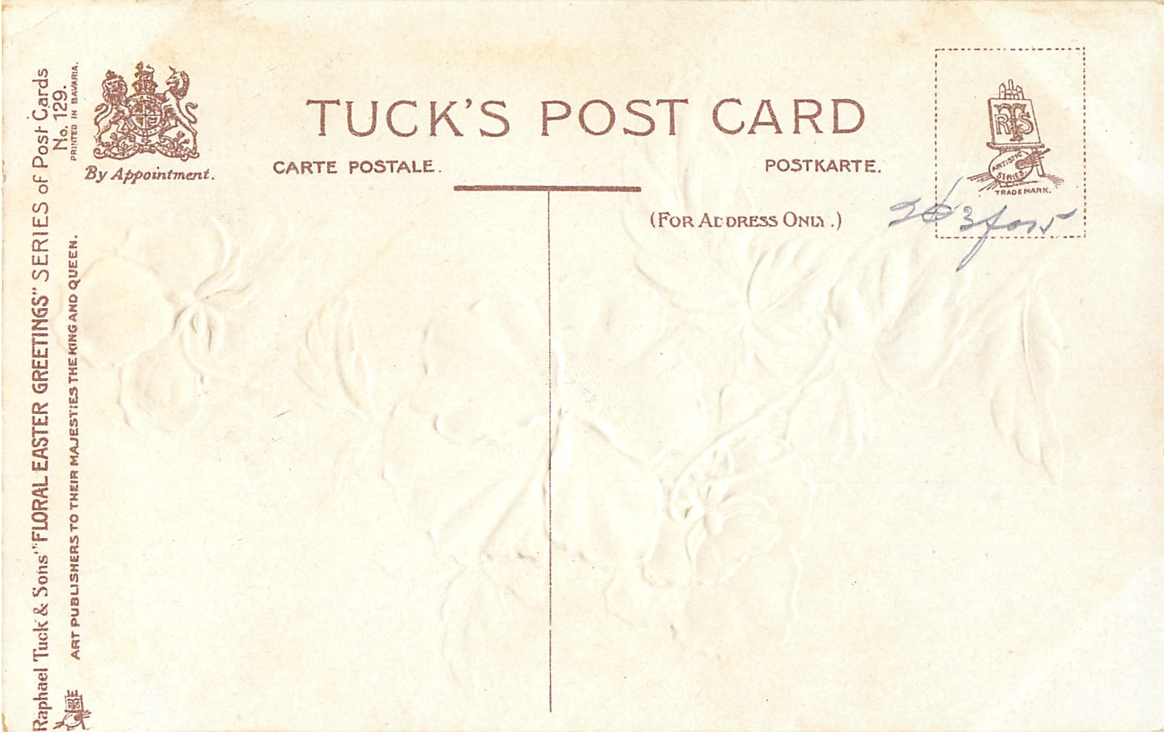 embossed, PRINTED IN BAVARIA, same images as 120 but with Easter greetings added, come glittered
