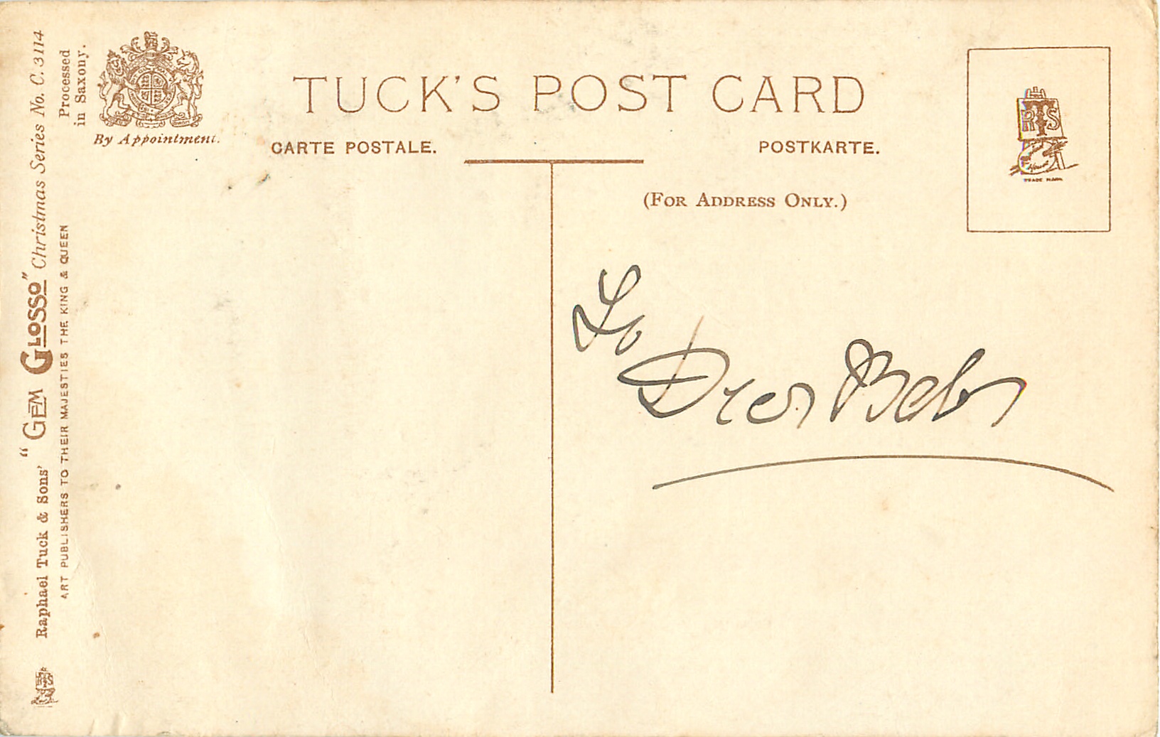 verse:- OF CHRISTMAS GIFTS MOST NEW AND RARE MAY YOU HAVE QUITE A GOODLY SHARE.