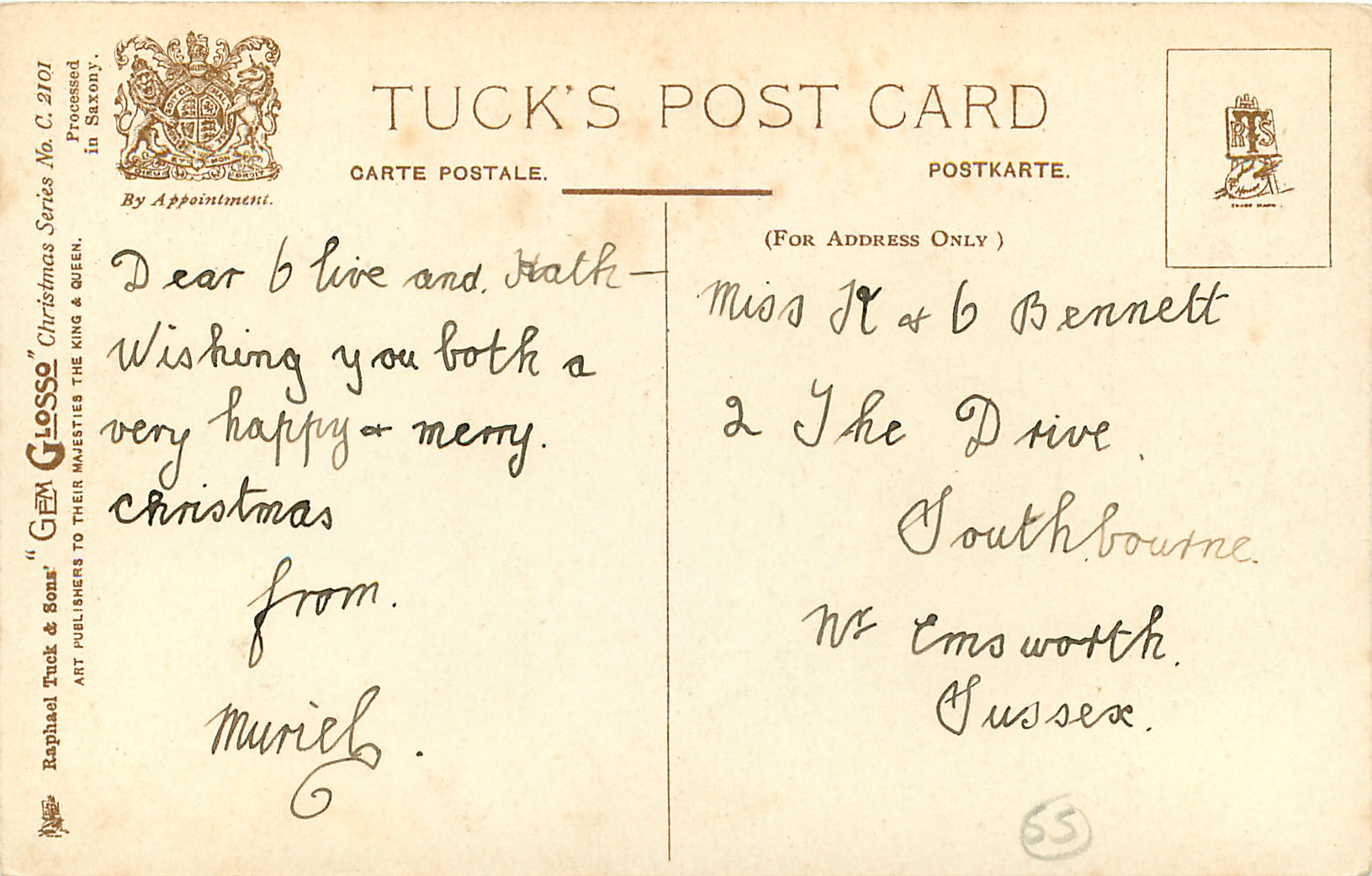 CHRISTMAS GREETINGS book, thatched cottages, lilac