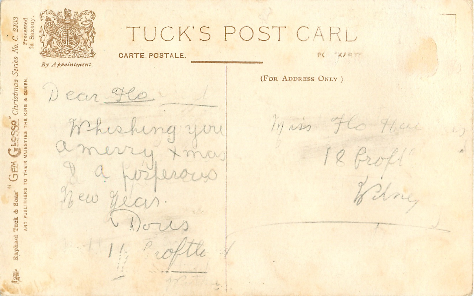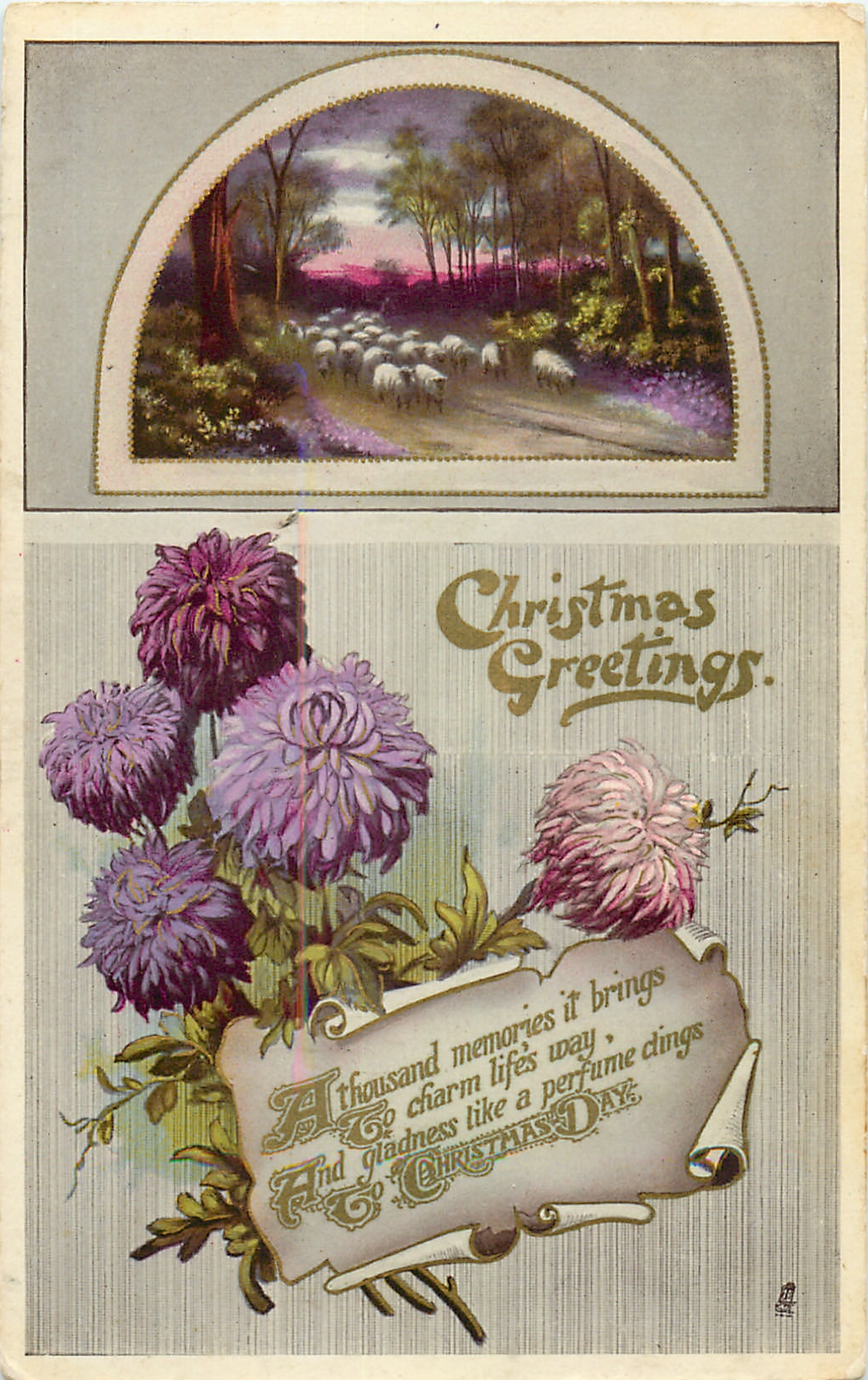 verse:- A THOUSAND MEMORIES IT BRINGS TO CHARM LIFE'S WAY, AND GLADNESS LIKE A PERFUME CLINGS TO CHRISTMAS DAY.