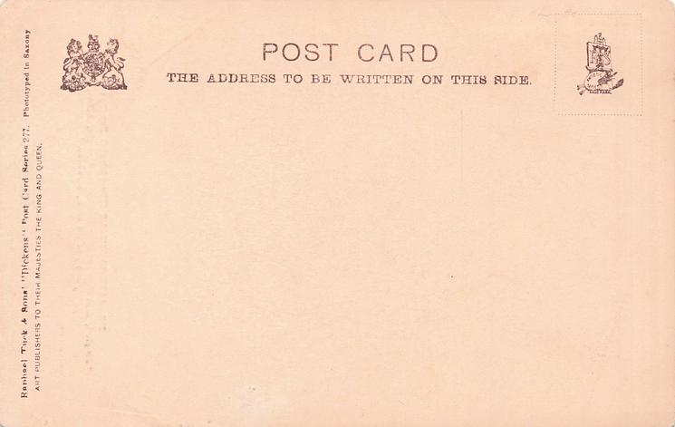 u/b, 2 backs, PHOTOTYPED IN SAXONY, listed in 1904 & 1911/1912 Postcard Catalogues, same slightly smaller images in 1637-1642, quotes Dickens