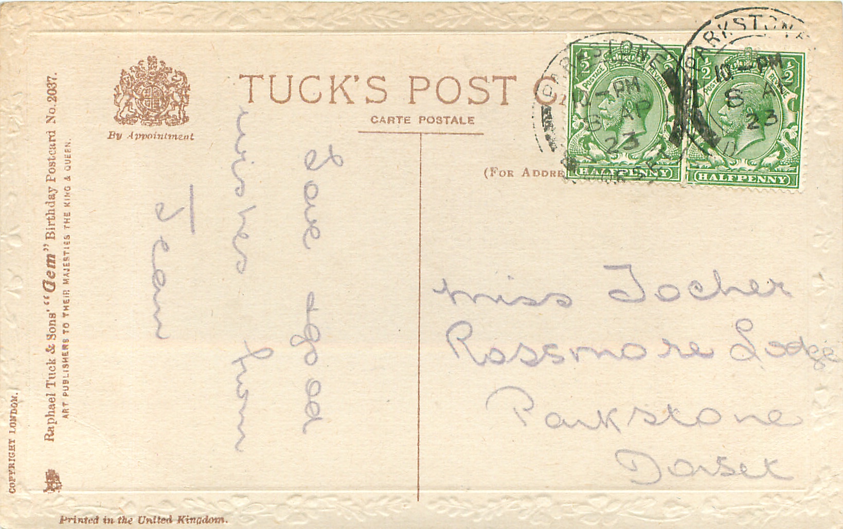 verse:- BEST WISHES FOR A HAPPY DAY AND WHEN TO-DAY IS SPENT, A YEAR OF JOY WITHOUT ALLOY AND ALL YOUR LIFE CONTENT, same image GEM CHRISTMAS 7526