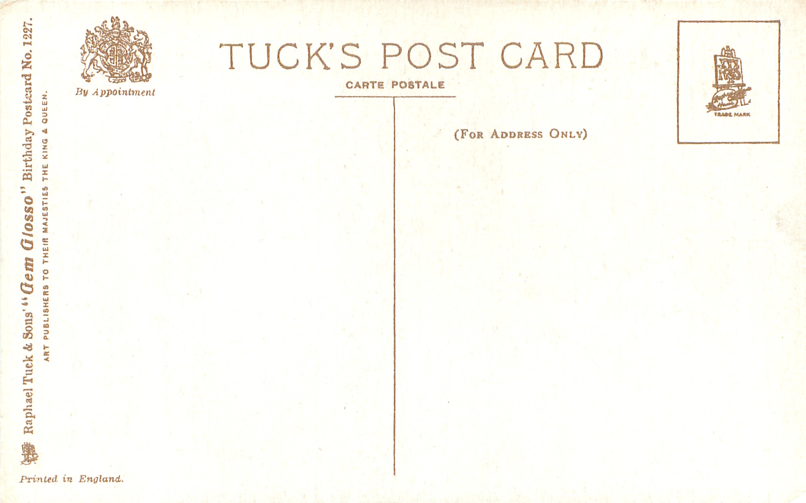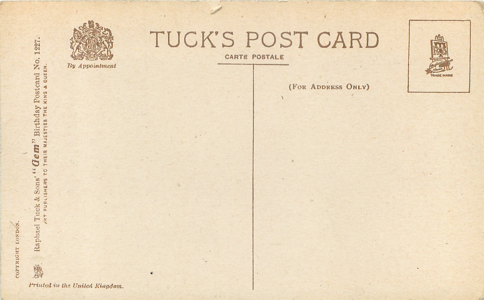 verse:- JUST A LITTLE CARD TO BRING MY LOVE TO YOU, AND SAY THAT HAPPY THOUGHTS AND FANCIES WING THEIR FLIGHT TO YOU TODAY same image & inscriptions without reference to family 1318