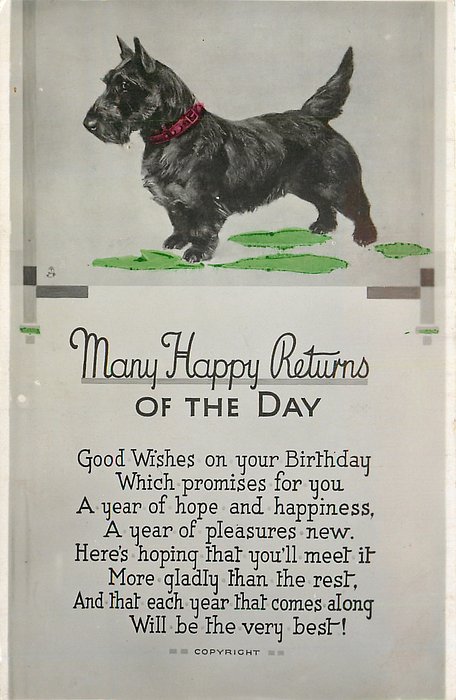 MANY HAPPY RETURNS OF THE DAY scottie stands facing left