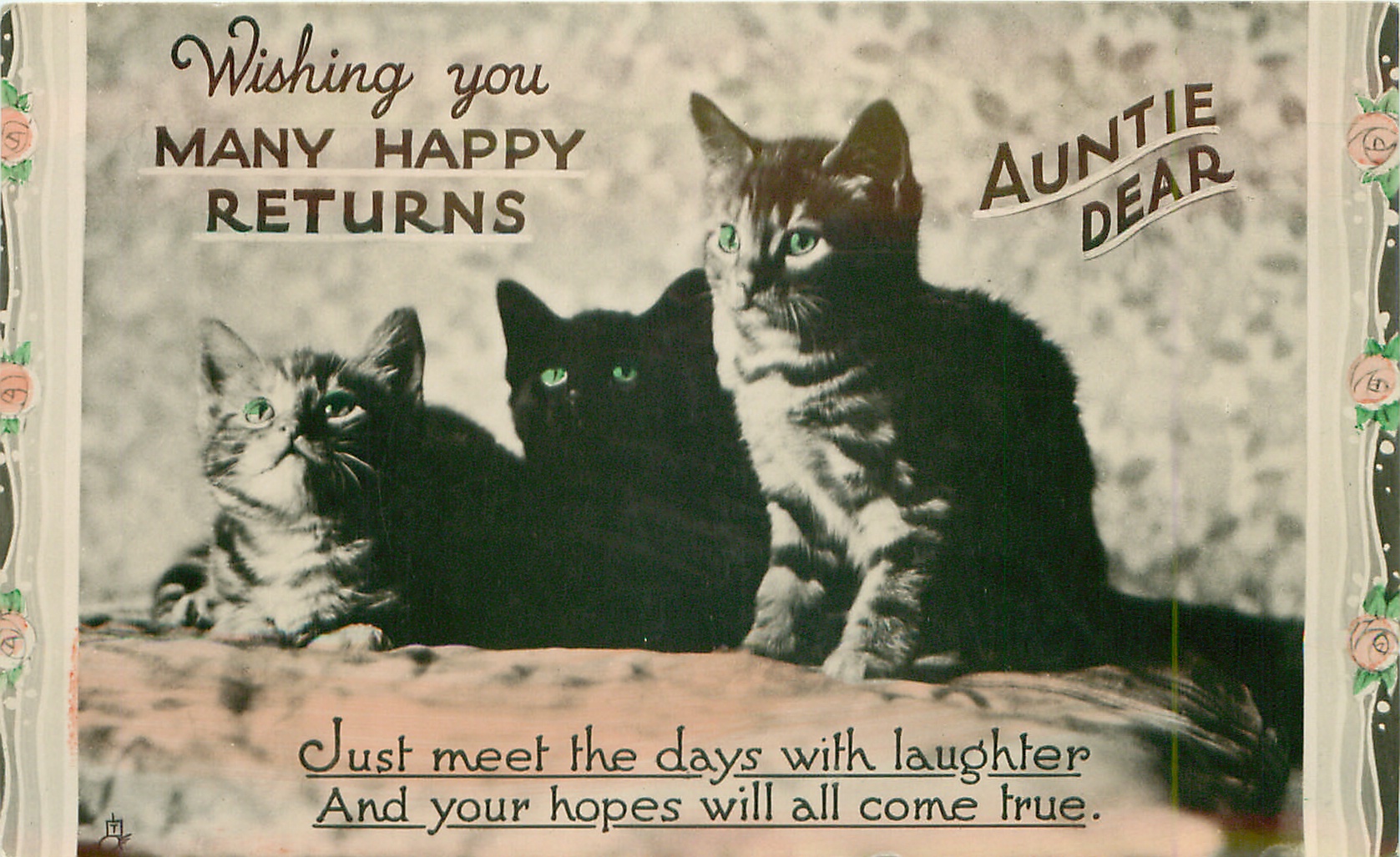 WISHING YOU MANY HAPPY RETURNS AUNTIE DEAR three kittens