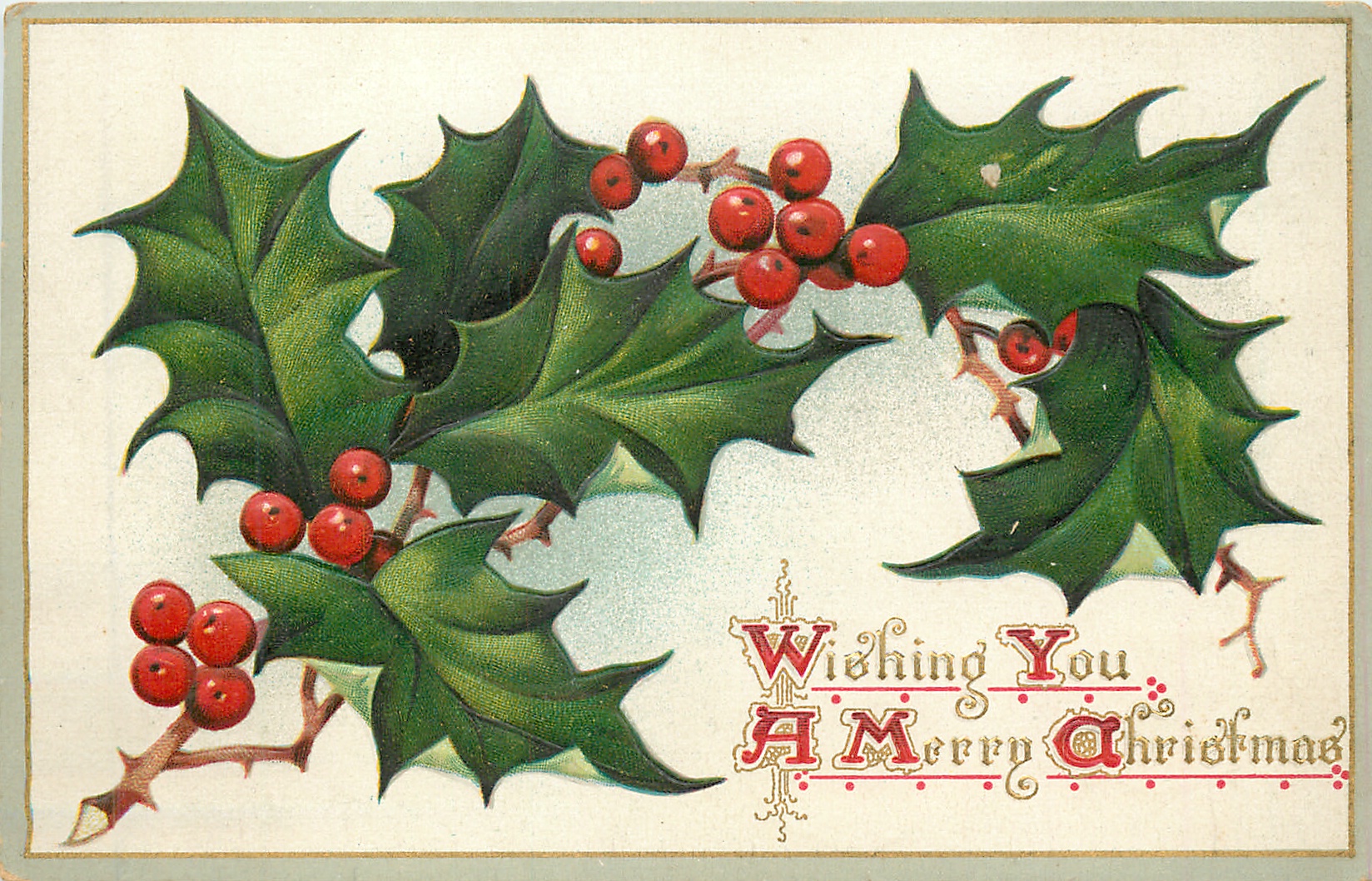 WISHING YOU A MERRY CHRISTMAS one stem to the left that forks quickly, nineteen berries visible, two leaves right